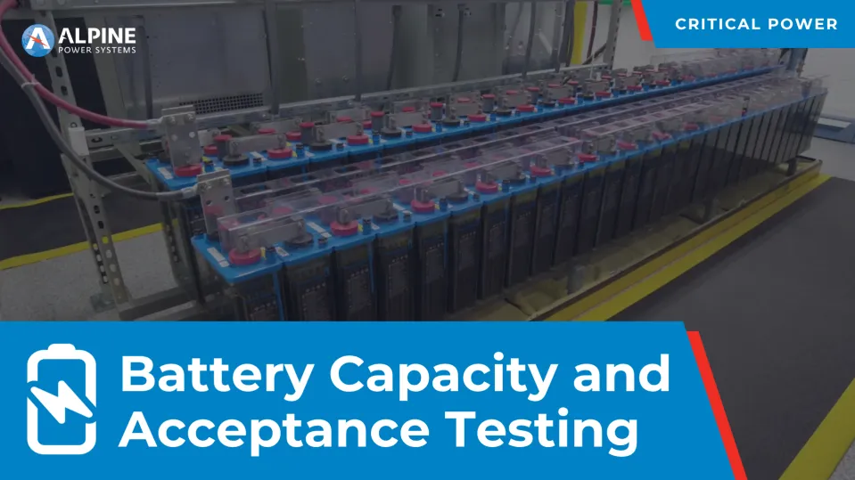 Battery capacity testing is essential for determining the performance of a battery and its predicted life curve. With Alpine's battery capacity testing, you are able to know the performance and expected life of your battery system in the most cost-effective manner.