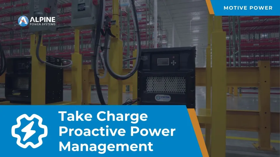 Alpineās Take Charge Proactive Power Management will give you peace of mind by covering all your motive power and forklift battery needs under one package. Stay ahead of equipment failures, downtime risks and unplanned expenses with one simple monthly subscription.
